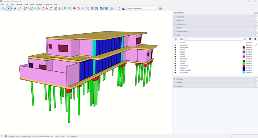 【环境】不仅用作模型的光源,还是精确表现【逼真材质】的关键。 在全新的环境面板中,您可以选择一组默认环境,或者使用面板中的+按钮导入喜欢的HDRI(或EXR)文件。编辑面板中,启用将环境用作SkyBox,该环境的照片背景会替换模型的天空,从而营造出更加丰富的环境感。还可以自定义旋转角度、曝光度和反射参数。此外,还可以在模型库3D Warehouse中浏览丰富的环境资源。 ![]() 环境面板 无缝数据管理与互操作性升级 借助最新的IFC支持升级,在SketchUp桌面版中可以更好地在SketchUp中导入导出BIM数据,无需担忧数据的完整性受损。通过更加统一的数据交换流程和可预测的文件导入导出功能,能够维护建筑信息模型的完整性,显著降低手动返工的风险。 升级亮点包括:对IFC类别识别的增强、版本兼容性的保持、几何数据的优化以及为组件提供的新字典。 ![]() 将IFC文件导入SketchUp时自动将其IFC类别转换为SketchUp标记 IFC导入提升